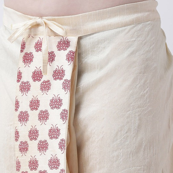 • Cream-coloured and red printed regular-fit dhoti pants with gathered and overlapping detail, has a waistband with a drawstring fastening