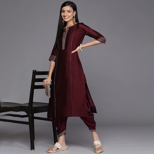Maroon solid loose-fit mid-rise dhoti salwar, has gathered and pleated detail has an elasticated waistband with slip-on closure